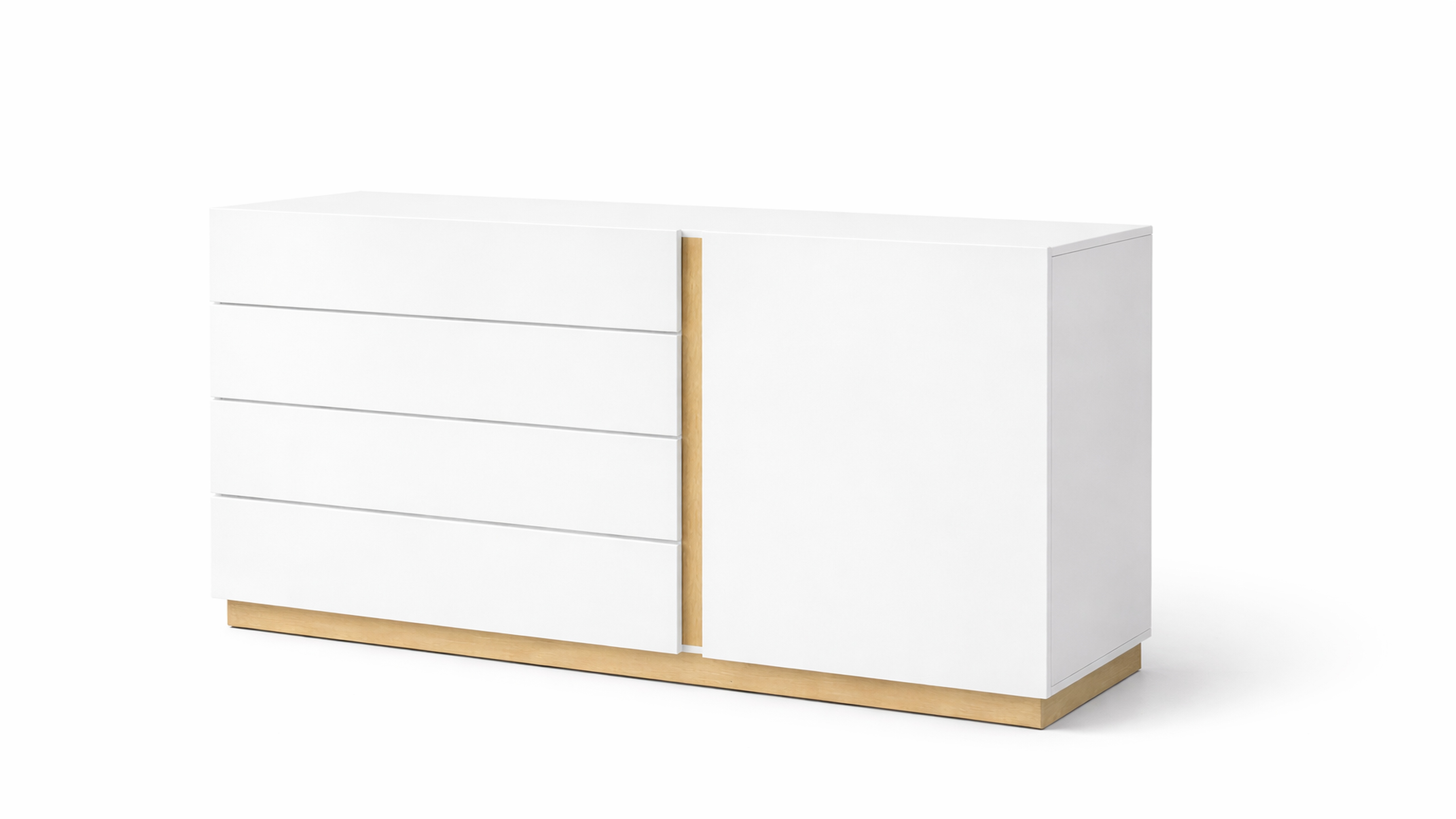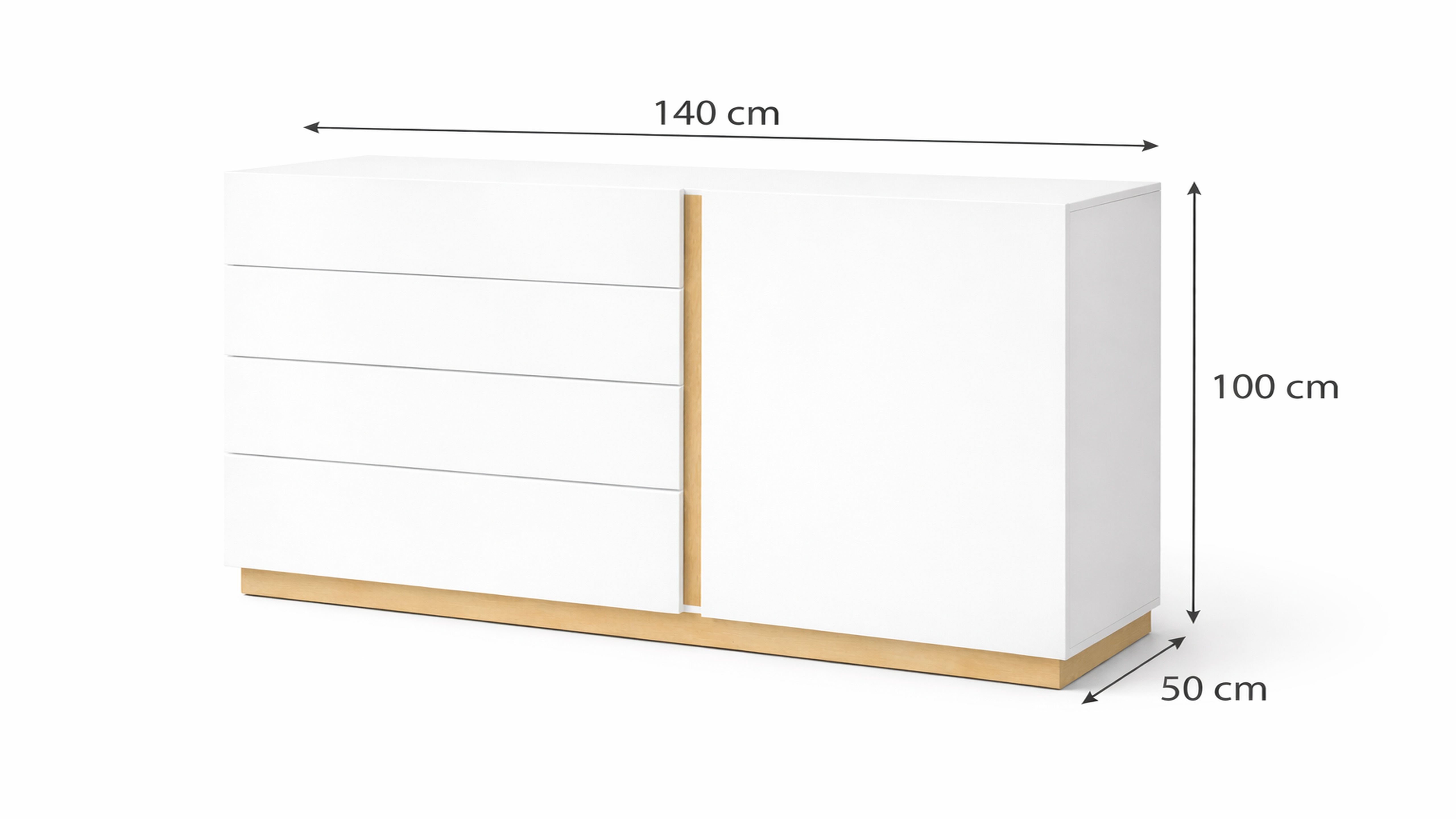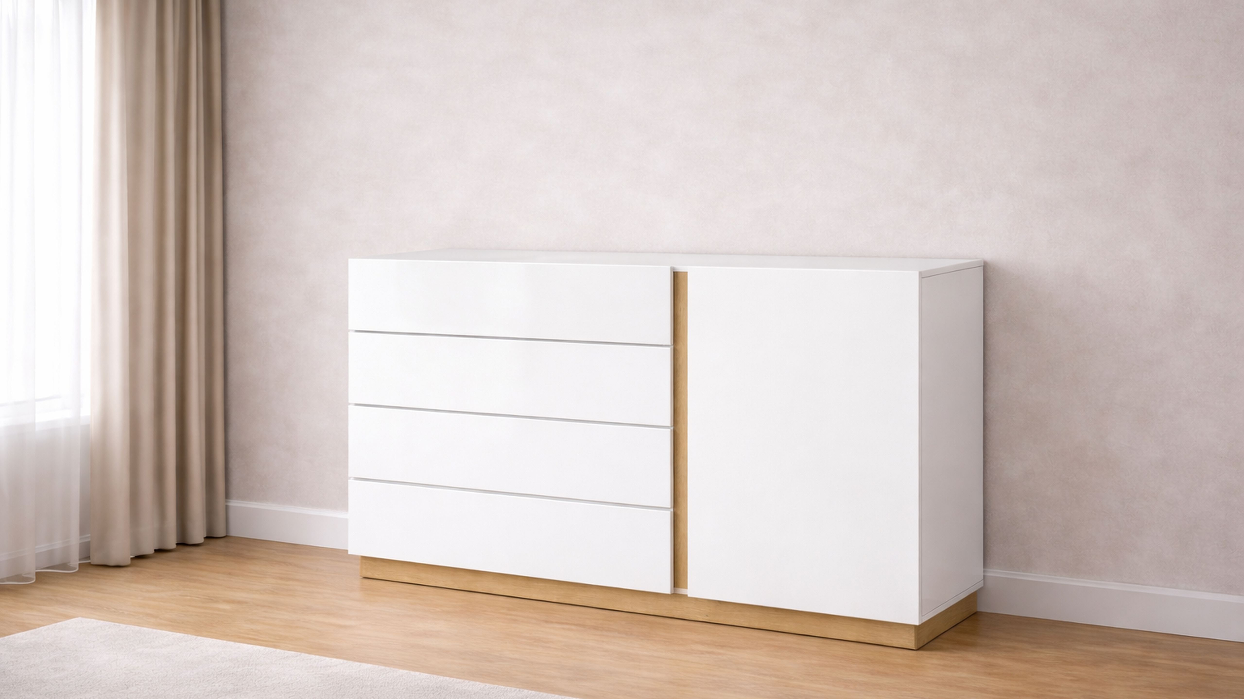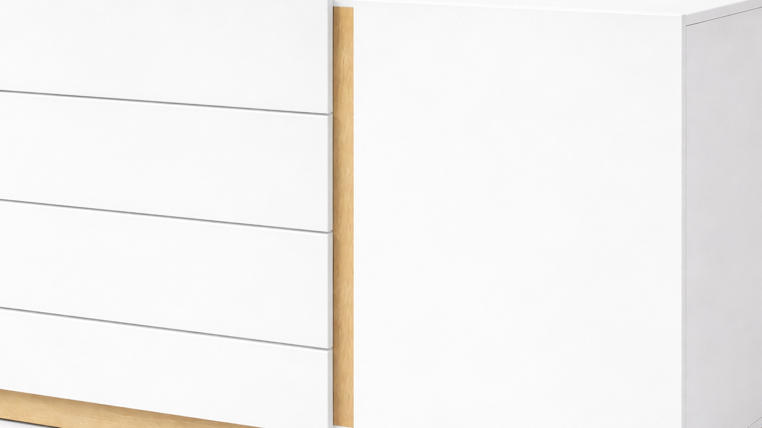 Комод Вайт - это современный стиль, в котором сочетаются два декора белый и цвет дерева.