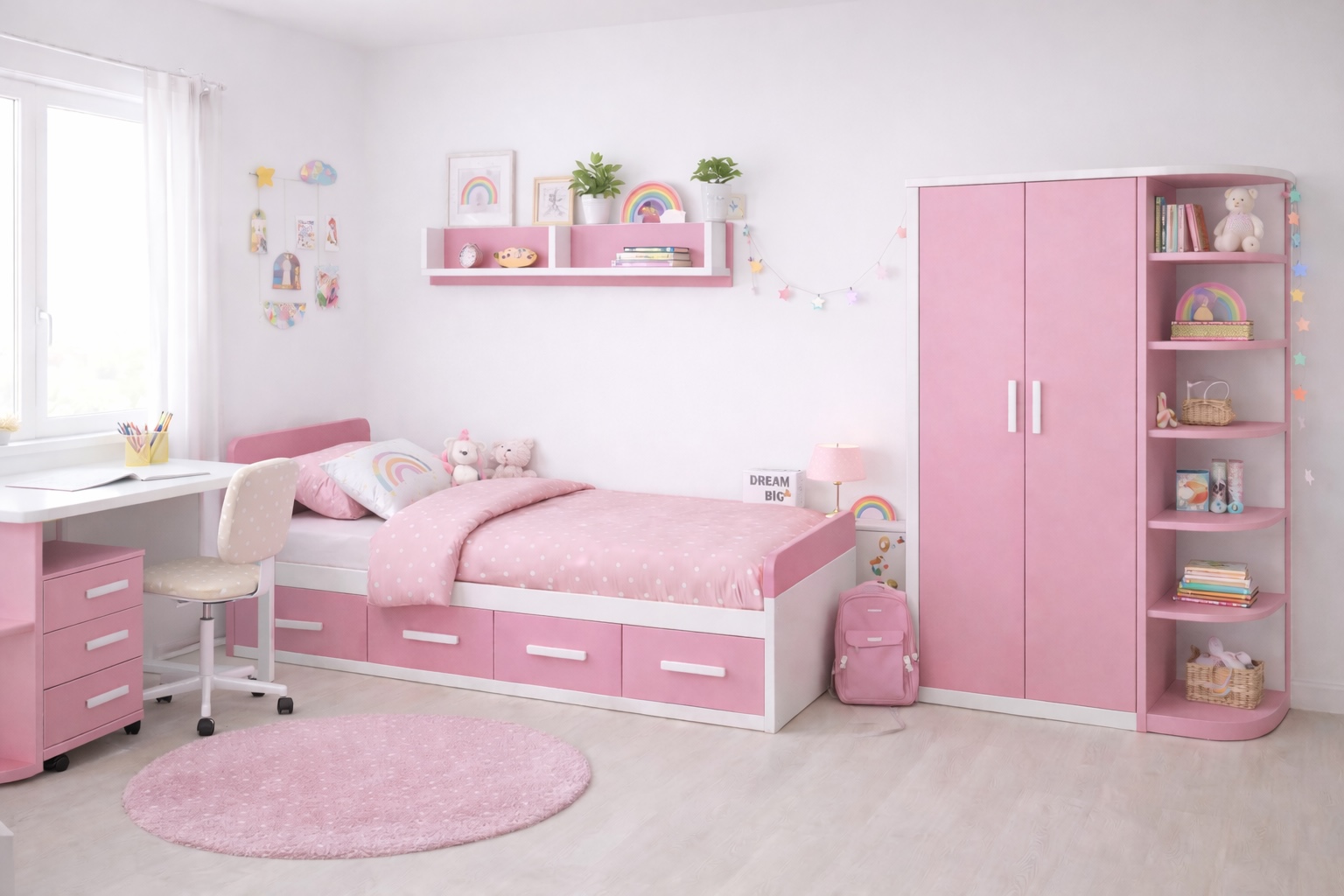 Детская спальня Адель производства ALIZEL (Ализель) — это современный комплект мебели для девочки, который сочетает нежный розово-белый дизайн и продуманную функциональность. Подходит для оформления детской или подростковой комнаты в квартире или доме.