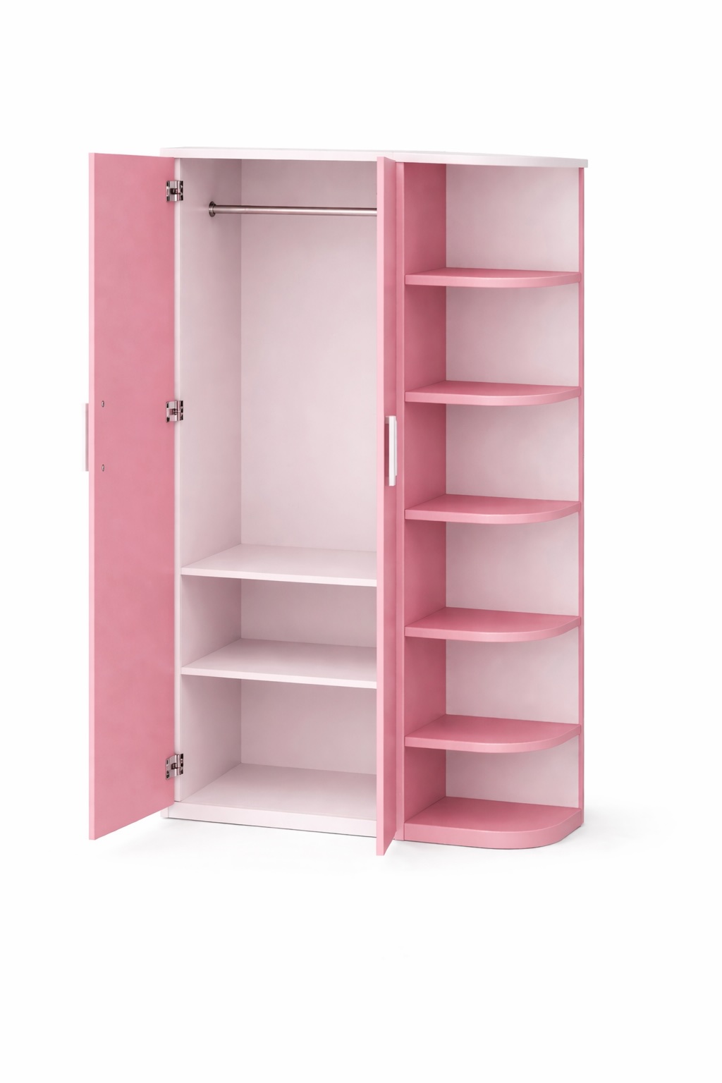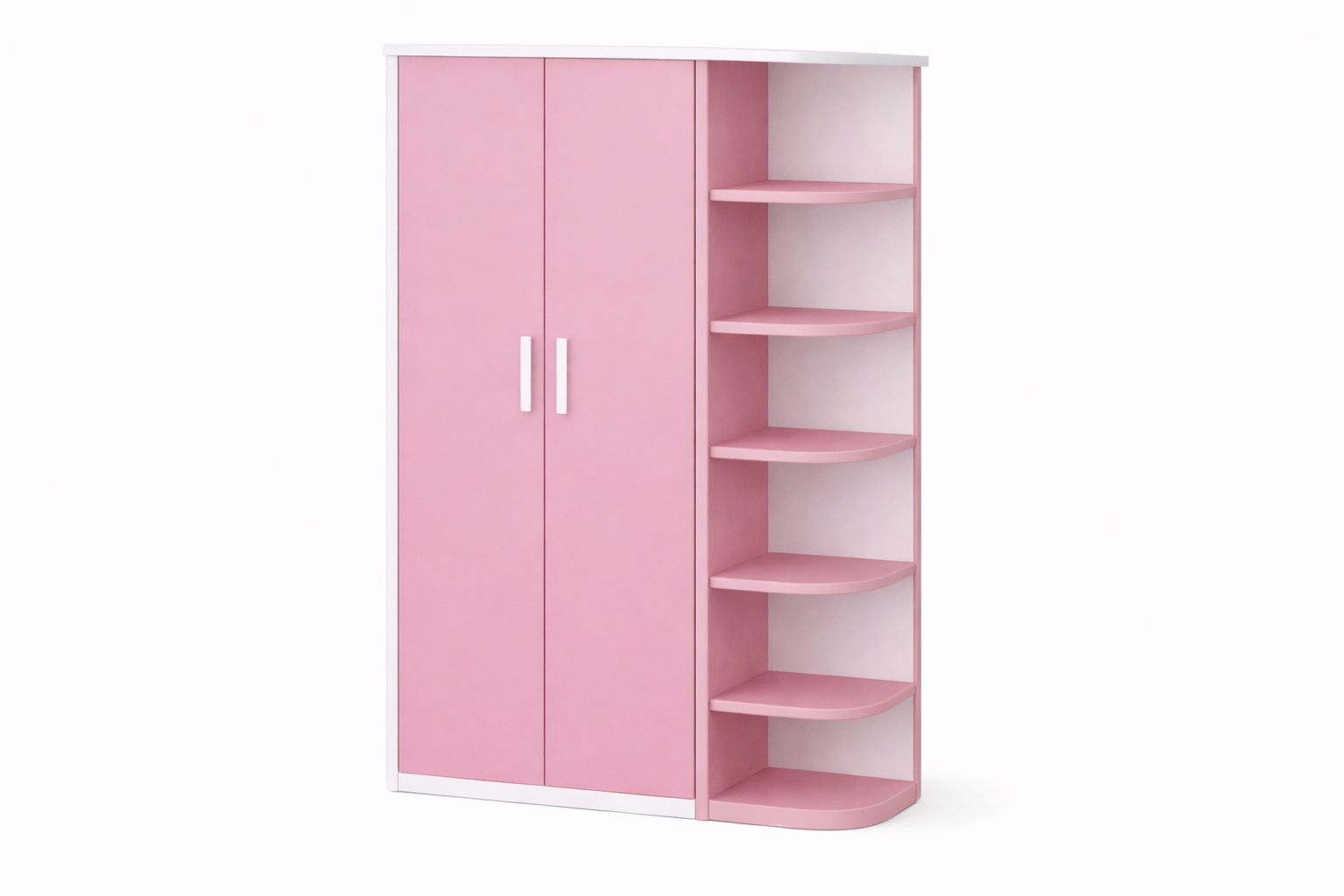 Шкаф обеспечивает достаточно места для одежды, а письменный стол формирует полноценную рабочую зону для школьницы.