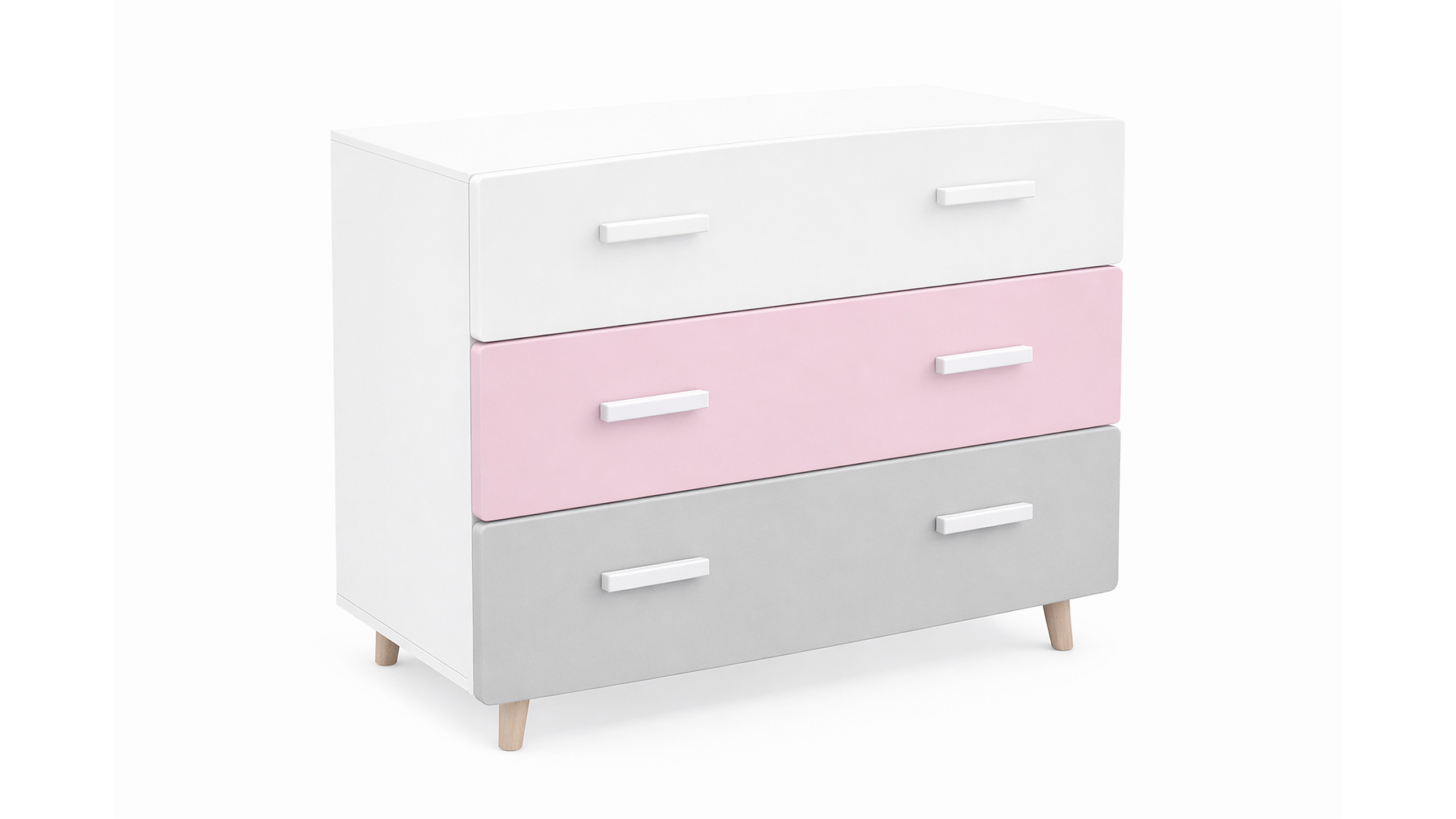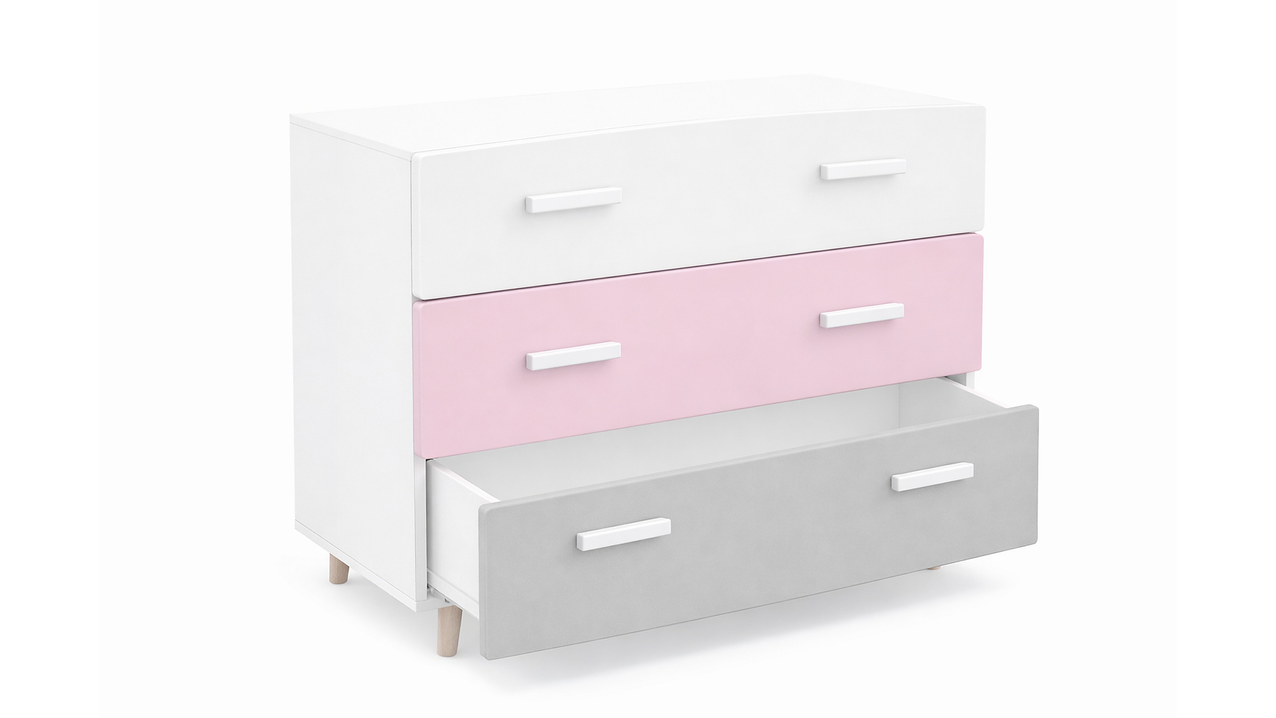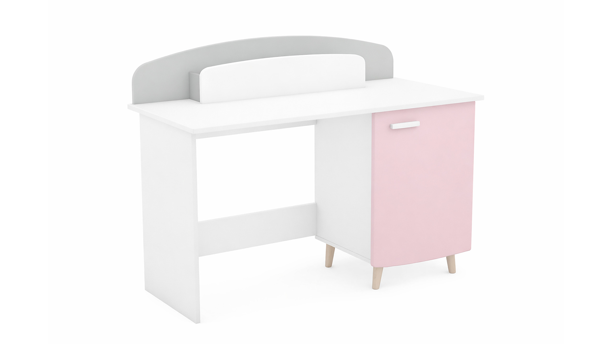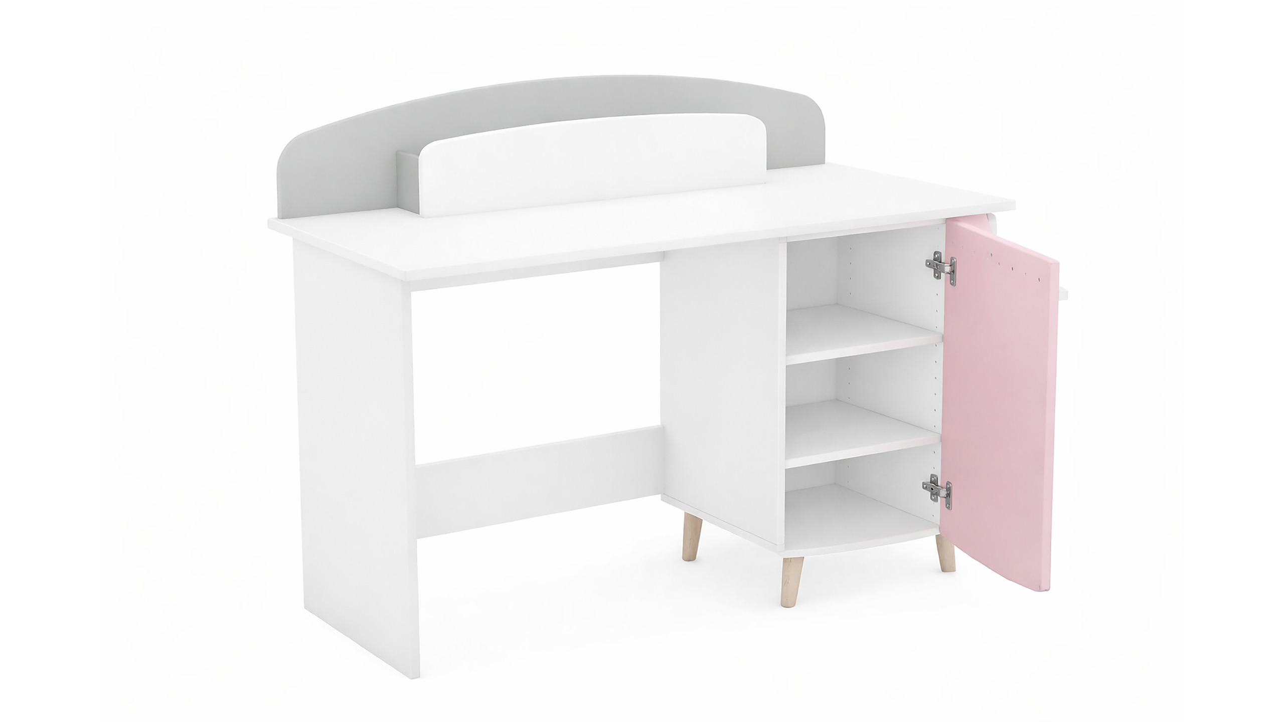 Каждый элемент комплекта продуман для удобства ребёнка. Вместительный шкаф позволяет аккуратно хранить одежду, комод — игрушки и аксессуары, а удобный письменный стол создаёт комфортное место для учебы и творчества.