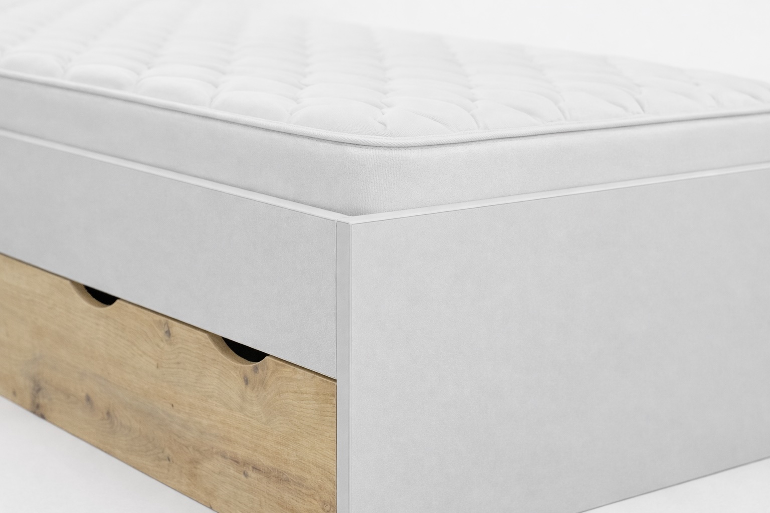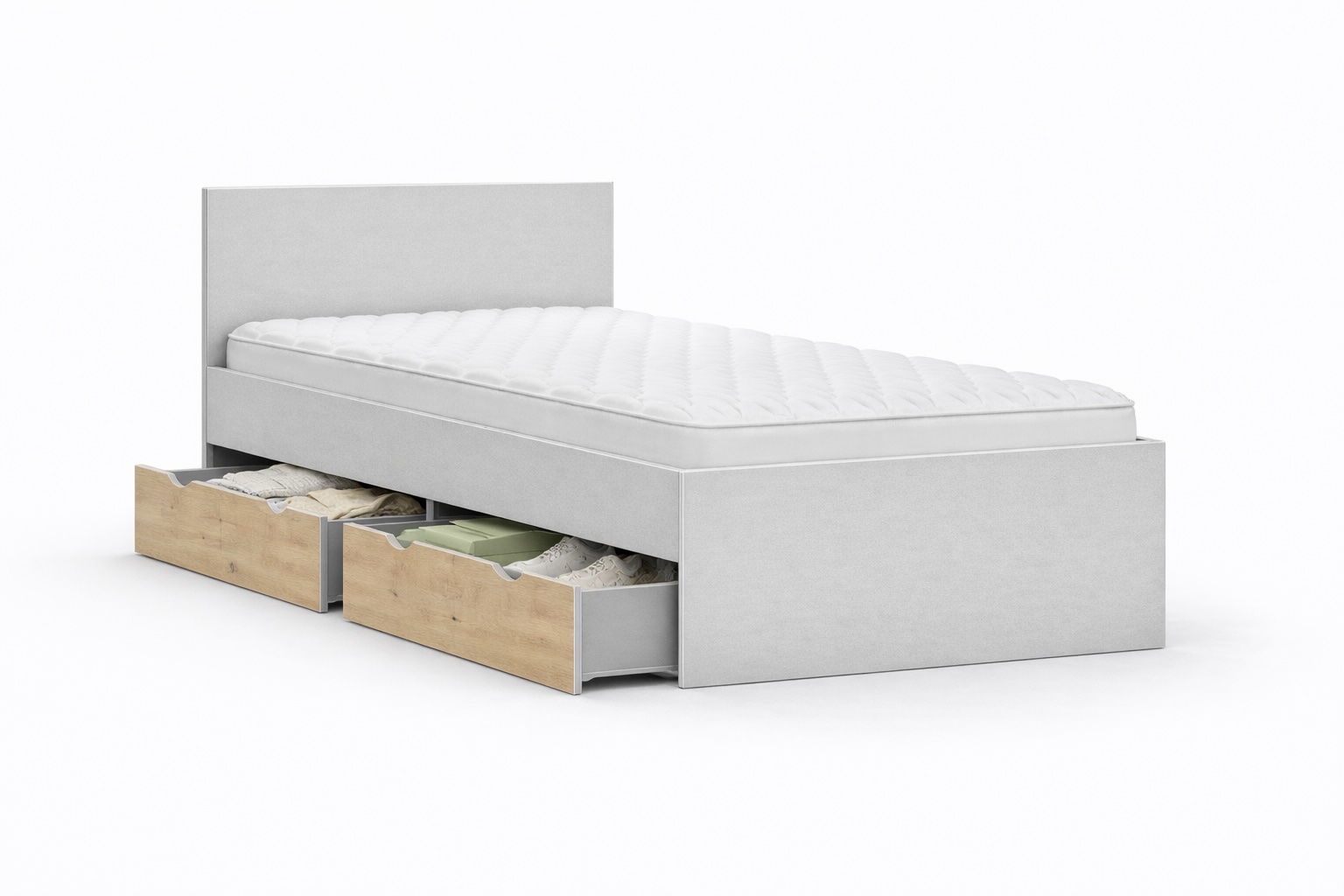 Детская кровать Грей — современная односпальная кровать для детской или подростковой комнаты. Модель оснащена вместительными выдвижными ящиками для хранения постельного белья, одежды или игрушек.
