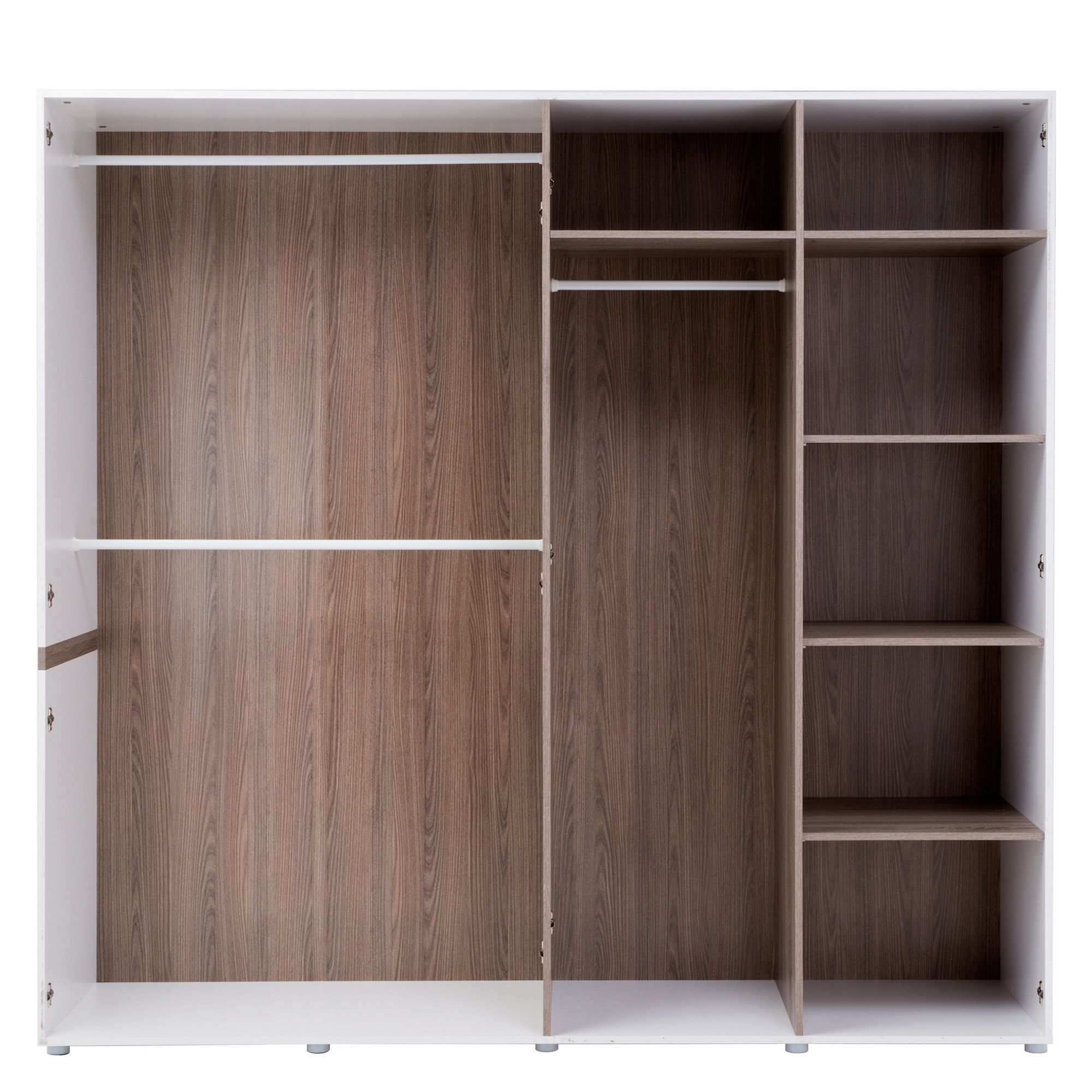 Фасади шафи Моніка 2, виконані з МДФ, корпус з ДСП. Усі петлі якісні з доводчиком, двері зачиняються акуратно, плавно. На другому фото видно наповнення шафи. Шафа Моніка 2 - це один із елементів спальні Моніка.